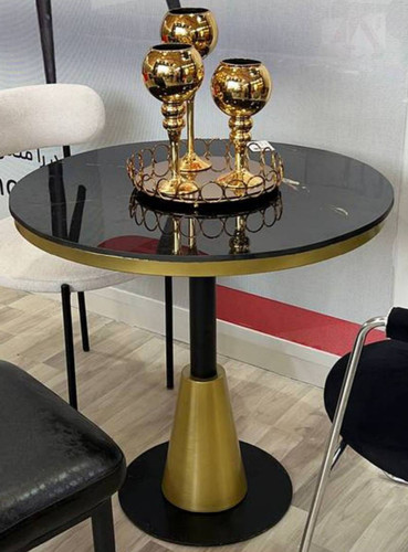 میز برتو پایه فلزی مخروطی صفحه ۹۰باکادر طلایی
