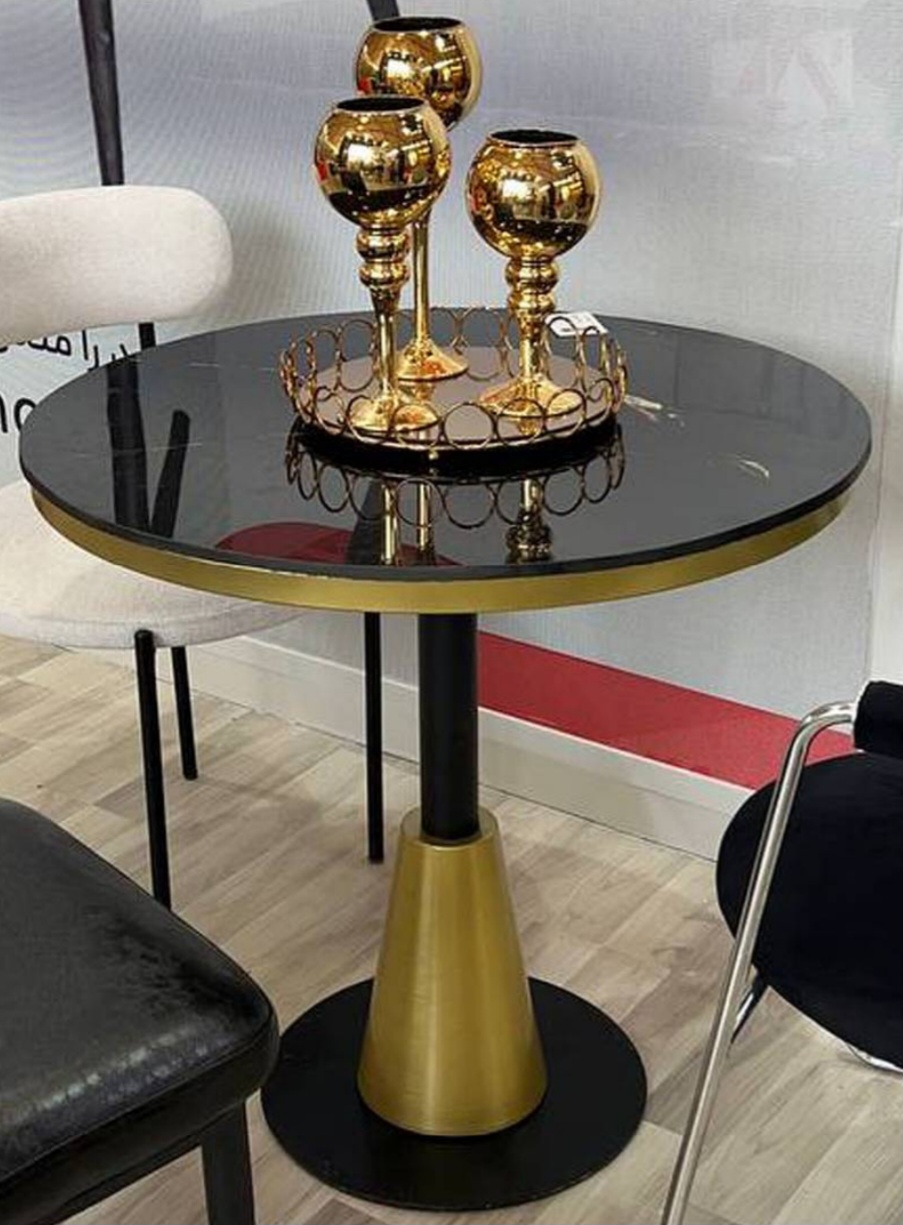 میز برتو پایه فلزی مخروطی صفحه ۹۰باکادر طلایی